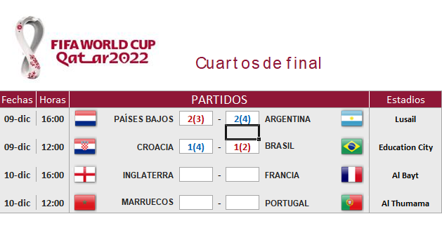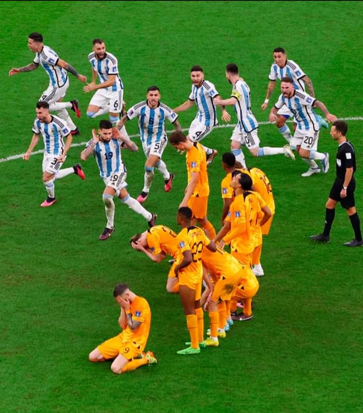 Todo se definía en los penales Van Dijk comenzó la tanda fallando el primero ante una buena atajada del dibu Martínez, luego Messi mandaba un pase a la red con toda la calma del mundo. En el tercer penal Berghuis erraba ante un gigante arquero de Argentina y acto siguiente Paredes anotaba para poner pie y medio en semis. Koopmeiners marcaba el tanto esperanzador de Países Bajos, pero Montiel ponía el tercero en el marcador. Weghorst también hacía los deberes y Enzo fallaba el penal definitivo para meter a Argentina en semis con un sufrimiento terrible. De Jong marcaba sin excesivos problemas, todo quedaba en los pies de Lautaro Martínez que ejecuto de gran manera, rompió el arco y estalló la alegría Argentina a semifinales después de tanto sufrimiento. El sueño está más cerca que nunca.