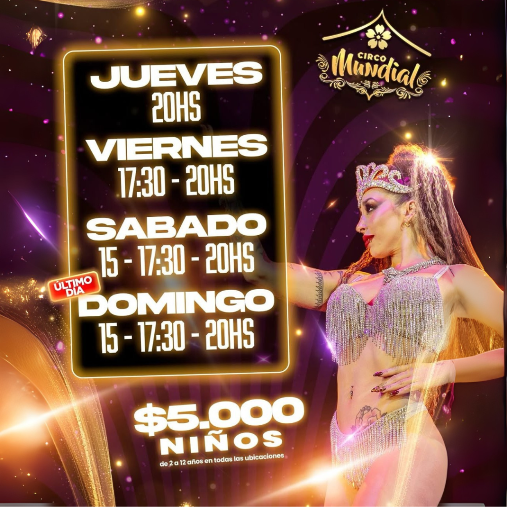 El Circo Mundial vive sus últimos días en Rosario, ofreciendo funciones que prometen emoción y diversión para toda la familia. Las presentaciones serán este jueves a las 20 horas; viernes a las 17.30 y 20 horas; y sábados y domingos a las 15, 17.30 y 20 horas, en la Rotonda de Francia, Parque Escalabrín y Ortiz.