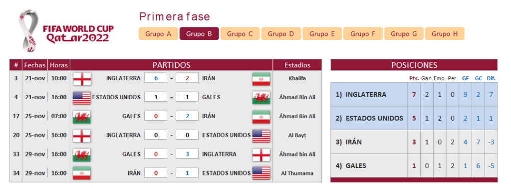 Inglaterra venció a Gales por 3-0 y Estados Unidos hizo lo propio con Irán por la mínima. De esta manera el grupo clasificó a los europeos y norteamericanos a los octavos de final.