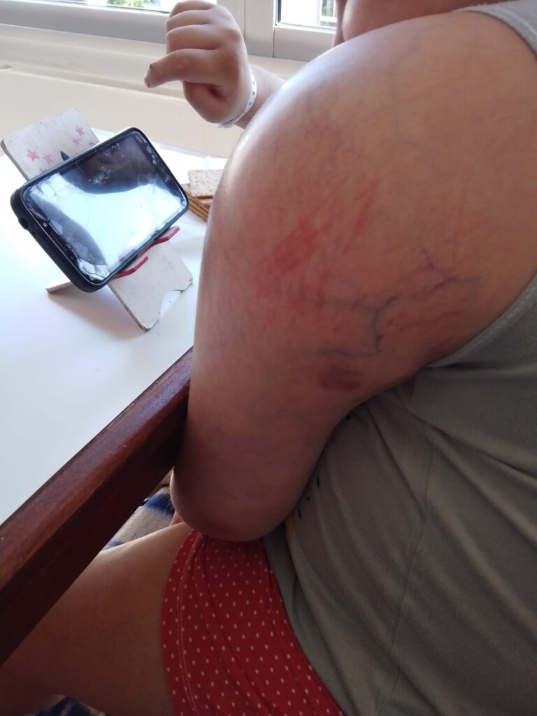 María Rosa mamá de Jazmín pide colaboración para su hija de 10 años. A Jazmín le detectaron en el mes de mayo un OSTEOSARCOMA en el brazo izquierdo, hizo quimioterapia y como no funcionó esto derivó en una internación en el Sanatorio de la Mujer.