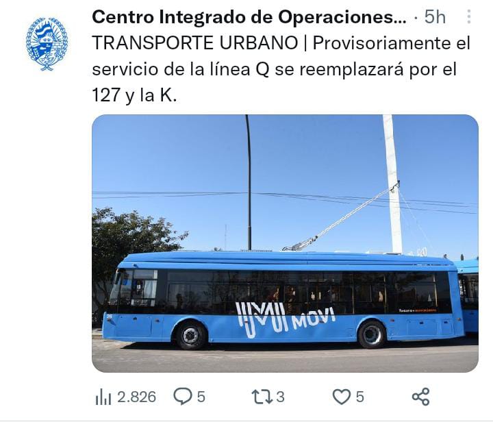 El municipio explicó oficialmente que como consecuencia de las altas temperaturas registradas en la ciudad durante los últimos días, que generan el recalentamiento de las baterías que permiten el funcionamiento autónomo de los trolebuses, de manera temporal y hasta que disminuya el calor, la prestación de la línea Q será reemplazada desde este lunes 23 por otros dos servicios con similar recorrido.