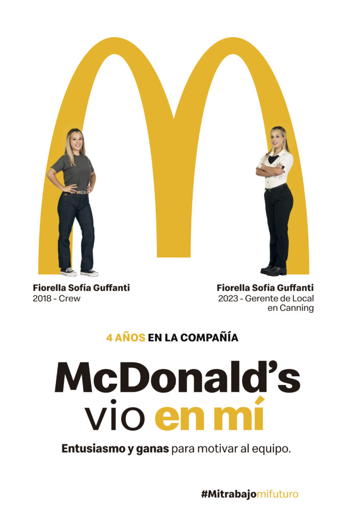 A raíz de este informe, la compañía lanzó su campaña “McDonald’s vio en mi”, una plataforma de mensajes y contenidos que permite conocer a quienes actualmente pertenecen a la compañía, cómo fueron sus experiencias y dónde se encuentran hoy. Es una forma de dar a conocer que el paso por McDonald’s es un espacio de crecimiento y oportunidades. En redes sociales de la empresa podrán verse algunos