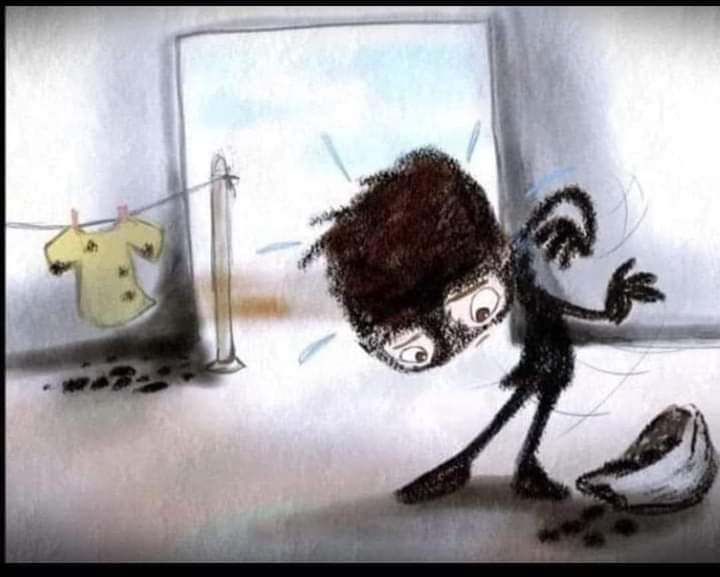 El niño se lo tomó como un juego y comenzó a lanzar los carbones, pero como el tendedero estaba lejos, pocos carbones acertaron la camisa.