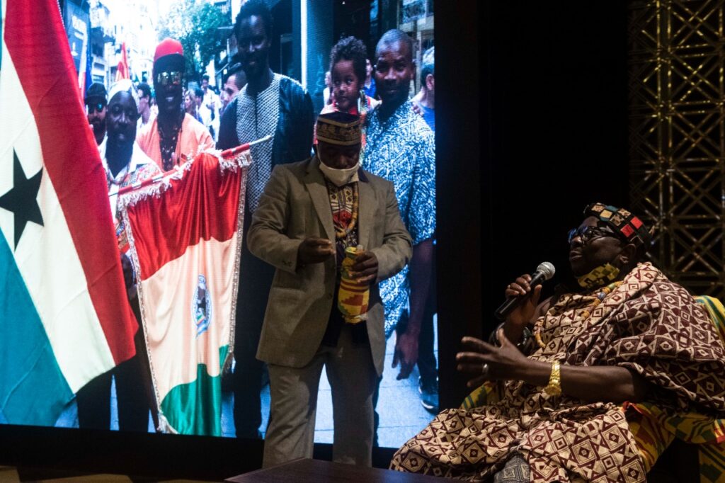 Stephen Amoakohene junto al Rey que llegó a la argentina y visitó el Museo Internacional para la Democracia de Rosario.